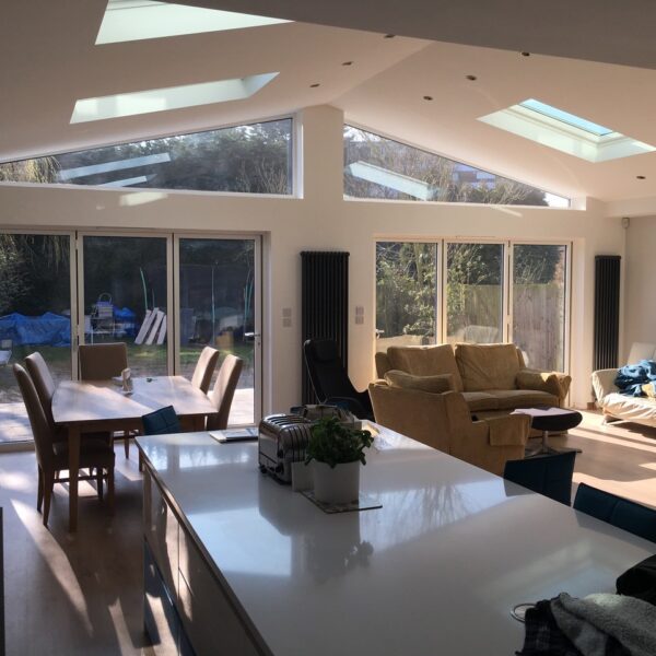 Opening the existing kitchen and dining room into the new extension to form a large kitchen and living area is a very popular idea to bring more light and space into your home.