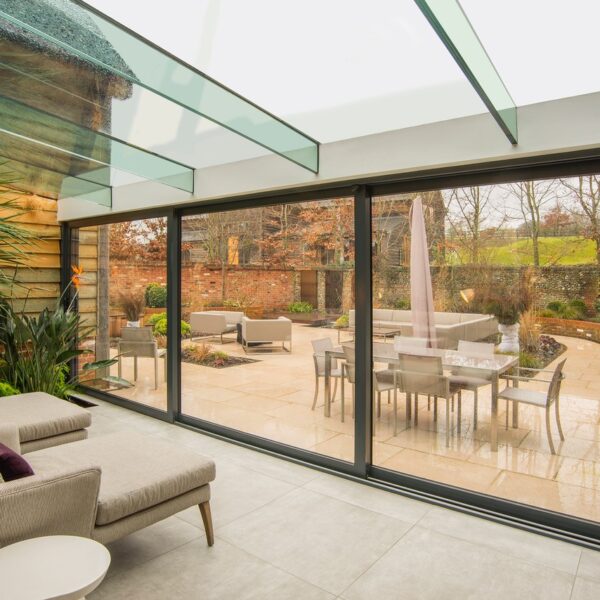 Modern, sometimes even sculptural house extension intended to make transition space between the original interior house and its large garden and the views. This type of building extension has contrast structure form, create a unique sign of the original house. It may have one or two storey “pavilion”, designed in unique shape gesture. Glass wall and ceiling are to capture the stunning views.