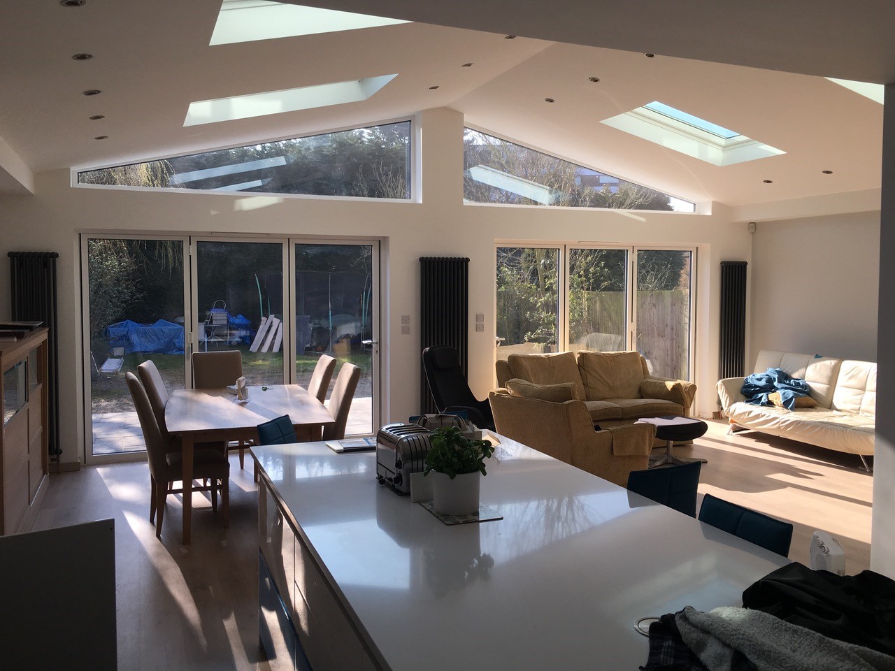 Opening the existing kitchen and dining room into the new extension to form a large kitchen and living area is a very popular idea to bring more light and space into your home.